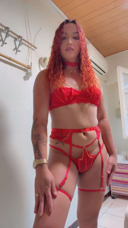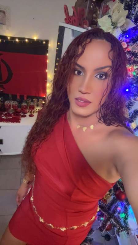 Je suis une escorttee femme transexuelle Aryela brésilienne avec les cheveux roux bouclés.