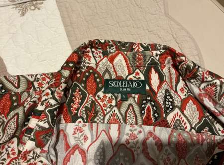 portée une fois . trop cintrée depuis que j’ai pris un peu de poids . 50 du prix neuf . une chemise de grande marque fabriquée en Provence . 100 coton .